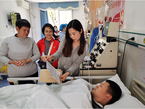 当日下午,二个受捐医院的代表来到市一医院造血干细胞采集中心,一直在采集中心外守候的他们,也代表医院和患者家属表达了内心的感谢。“非常感谢岳阳人的这种奉献精神。”