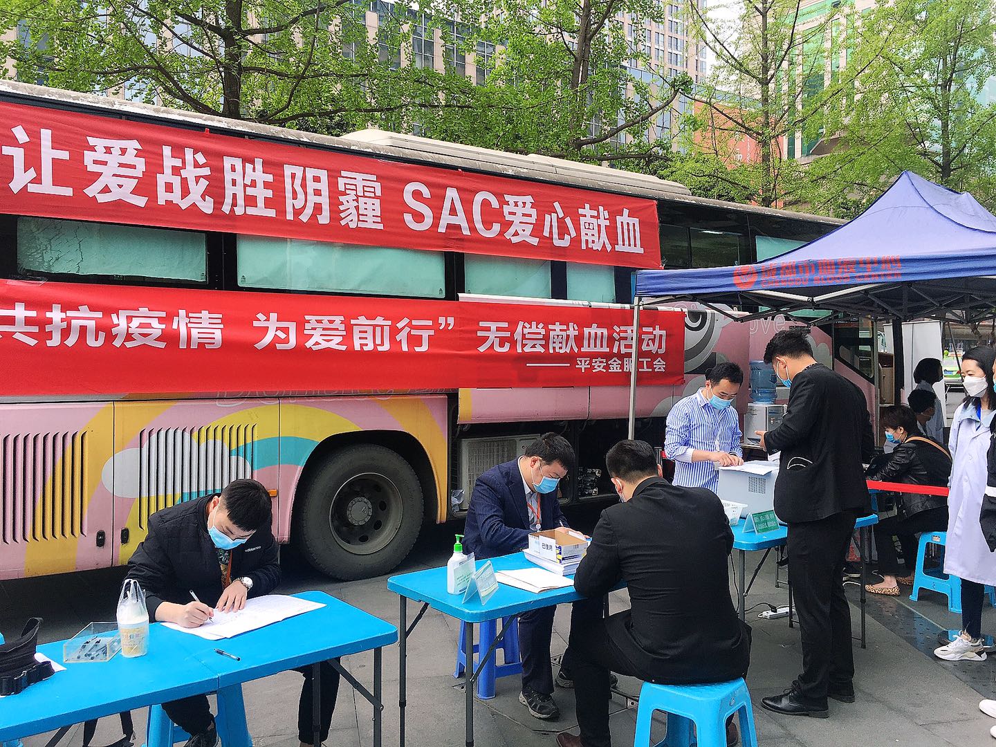 4月10日,平安金服成都分公司、平安普惠四川分公司在春熙路街道办的支持下,开展了“战疫情 献热血”无偿献血活动,活动当天,共有198名职工献血成功献血60680毫升。