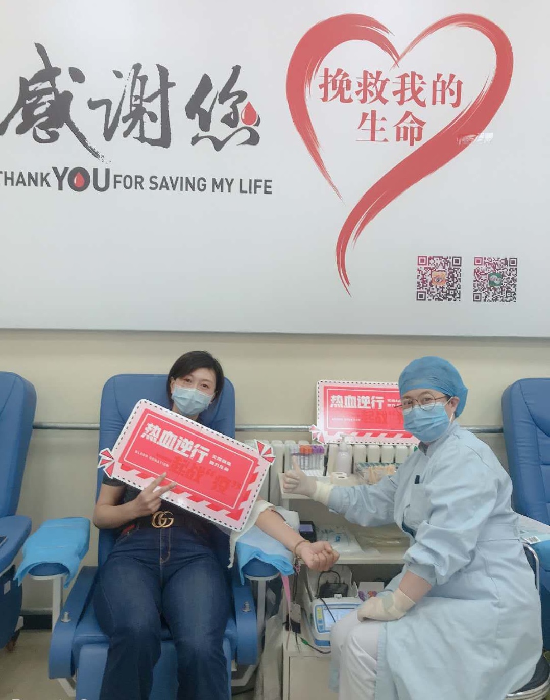 奥运女排冠军李珊挽袖献血