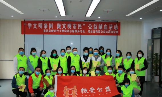 2020年4月19日上午,南昌县新时代文明实践志愿服务总队和南昌县微爱公益志愿者协会联合组织“学文明条例 做文明市民”公益献血活动,县新时代文明实践志愿服务总队副总队长、县志联会会长胡炜 ,县文明办负责人、县志联会秘书长王国明出席活动。