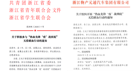 4月16日,浙江物产元通汽车有限公司团委积极响应团省委和物产中大集团团委发起献血号召,在公司党委的部署下,分4个点同时开展“热血先锋‘疫’战到底”主题无偿献血活动。