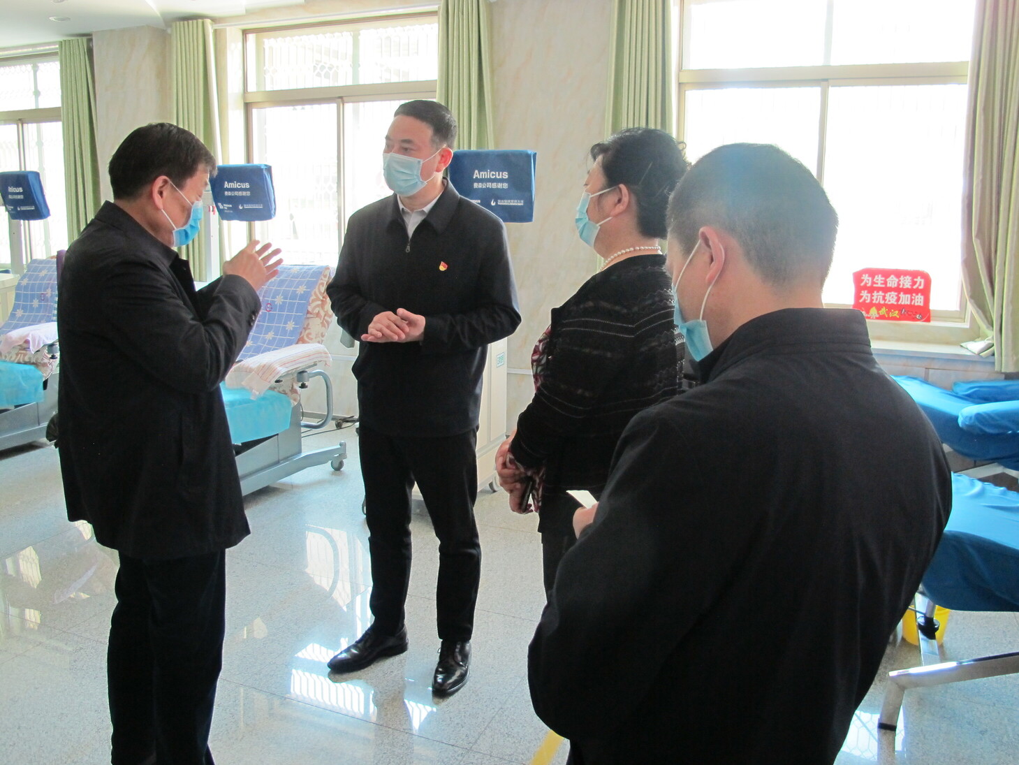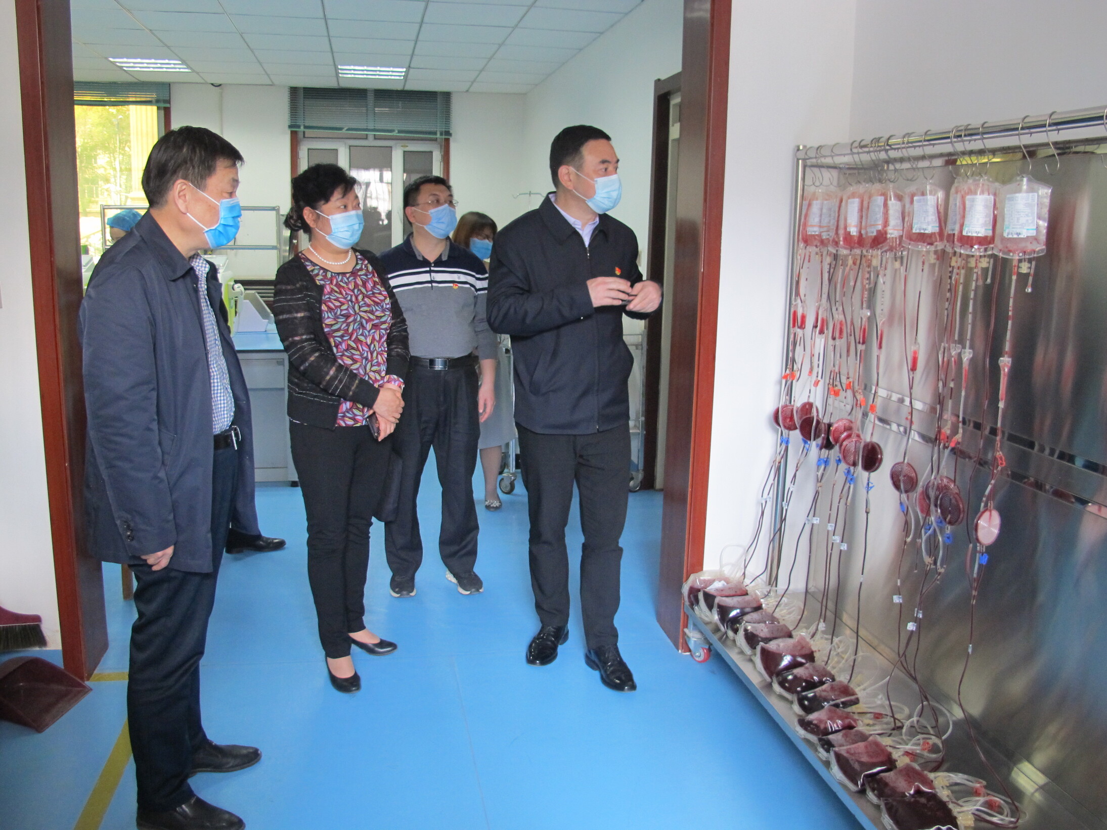 4月21日下午,自治州党委副书记、福建省援疆前方指挥部总指挥长王中一行深入昌吉州中心血站调研。州党委副秘书长余斌、州卫健委党组书记王瑛、州中心血站领导班子成员张金磊、姚秀丽陪同调研。
