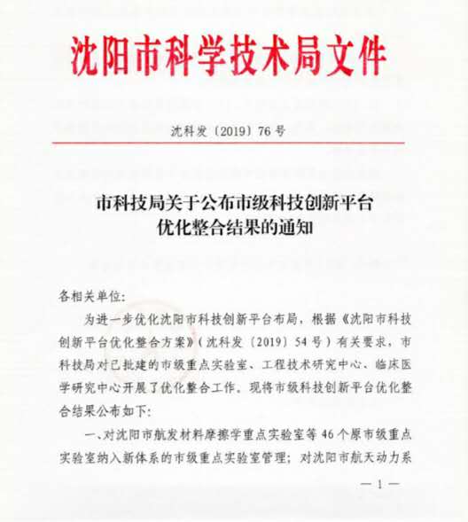 为进一步优化沈阳市科技创新平台布局,根据《沈阳市科技创新平台优化整合方案》的要求,市科技局对已批建的市级重点实验室、工程技术研究中心、临床医学研究中心开展了优化整合工作。