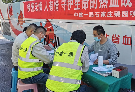 4月20日,中建一局石家庄臻园项目部组织开展“守护生命的热血战役”主题无偿献血活动,以实际行动助力抗疫。