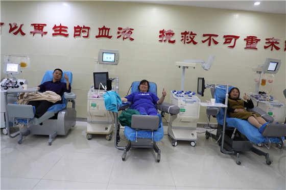为了让全家人了解无偿献血,朱家时不时还开“家庭会议”研究献血。“我两个妹妹都献过3次全血,看我经常献机采血小板,所以今天也想过来尝试一下。”正在献血的朱云芳骄傲地说,家里不仅两个妹妹身体力行支持无偿献血这项公益事业,自己的妻子、儿子也都是无偿献血者。