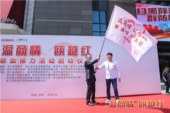 4月29日上午,由杭州市温州商会、杭州华鑫世贸建材有限公司、杭州市温商慈善基金会等单位主办,浙江省血液中心、杭州市献血服务中心、杭州市温州商会建筑装饰分会、滨江第六空间大都会、杭州大堂壹号建筑装饰工程有限公司等单位协办的“温商情 瓯越红”献血接力启动活动(杭州站),在滨江第六空间大都会国际建材馆隆重举行。杭州市工商联党组成员、巡视员毛福俊,温州市政府驻杭办事处主任季旭南,浙江省血液中心副主任徐健,杭州市献血服务中心主任洪丽冰,浙江省域温州商会、杭州市温州商会会长、南大集团董事长陈建华等领导出席活动,在杭温商及媒体朋友们近200人参加本次活动。本次活动由FM104.5旅游之声张博主持。