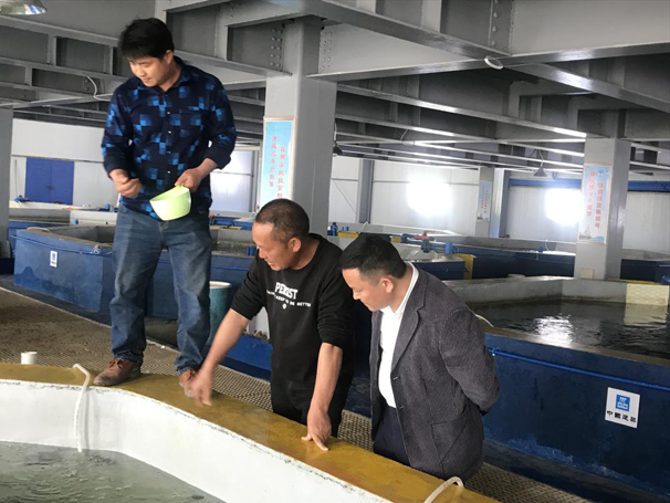 (图为站党总支副书记、副站长付胜走访查看渔业养殖基地)
