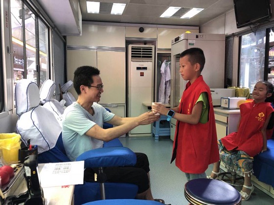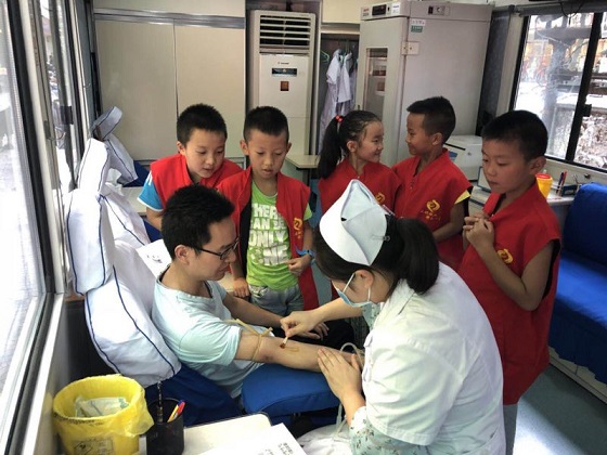近日,恩施市实验小学三年级二班的红领巾们利用暑期自发到舞阳坝爱心献血车开展无偿献血志愿服务。