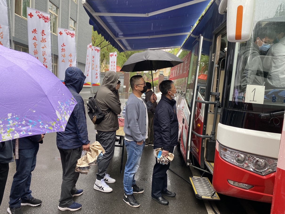 外面是阴雨绵绵,但走进献血车里面却格外温暖,随处都能感受到流露出的爱心。医护人员一边采血一边叮嘱大家献血后的注意事项,如饮食上要注意什么、近期不要剧烈运动等……带着体温的鲜血流进血袋,同时也把浓浓的爱心传递了下去。大家谈笑着彼此加油鼓劲,用初心、用热血,守护生命的花开,为广大患者筑牢生命的防线。