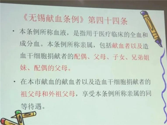 梁老师着重提到,在前不久通过的《无锡市献血条例》中,首次把祖父母与外祖父母也纳入到了无偿献血者的亲属范围中,在需要用血时,享受亲属同等待遇。听课过程中大家认真记录,时不时举手提问,取得了良好的授课效果。