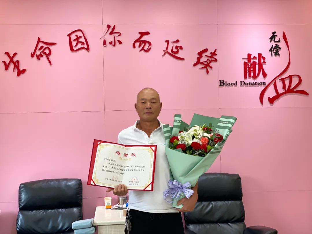 洛阳市 第122位百次献血者:王增光第1次献血时间2015年6月9日,第100次献血时间2020年5月8日,期间共捐献全血2次800毫升、机采成分血98次144治疗量,荣获全国无偿献血奉献奖金奖(2018年)。
