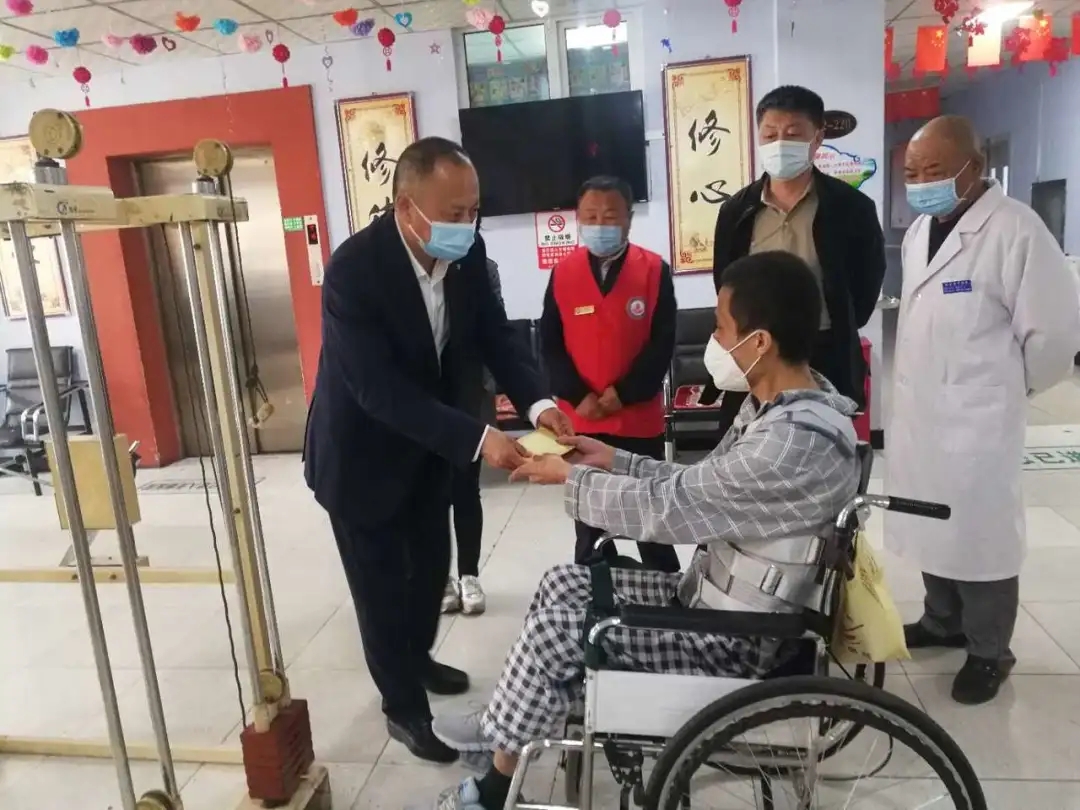 李爱伟是松原市一名优秀的无偿献血者及志愿者,多次参加献血,曾荣获无偿献血奉献奖金奖。他受伤住院的消息牵动着血站领导、职工及无偿献血志愿者的心,大家纷纷自愿为他捐款。5月9日,市中心血站站长许井彦、班子成员、市无偿献血者志愿者服务队队长于雷来到松原市中医院,看望李爱伟。在康复病房里,许井彦向照顾李爱伟的亲属了解了他的身体以及家庭情况。叮嘱病人及家属要克服困难,配合医生好好治疗,一定要树立战胜疾病和困难的信心和勇气,坚持不懈地进行康复锻炼战胜病魔,争取早日站起来。随后将血站职工捐助的5000元慰问金交到了李爱伟手中。略带湿气的慰问金捧在手里,暖在心里,血站领导及职工的亲切关怀,令李爱伟及家属感动万分,连声道谢。早在4月30日下午,市无偿献血志愿者服务队的部分队员在队长于雷的带领下,已经到医院看望了李爱伟。