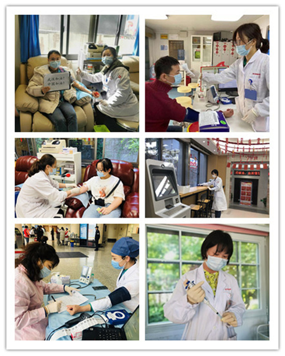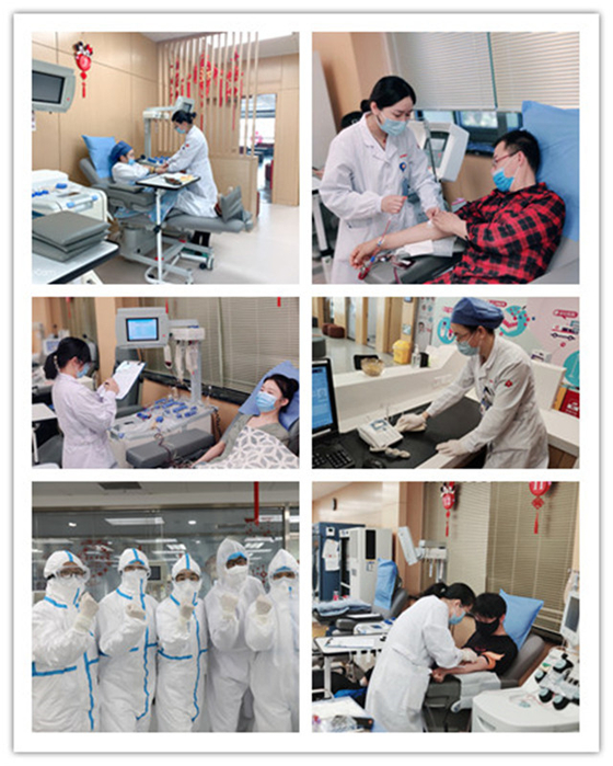 献血服务二科现有护士18名,疫情期间,她们除了做好常规的血小板采集以外,还承担了新冠康复者血浆采集工作。2月17日,当科室接到浙大一院新冠救治小组发出的危重患者用浆需求后,黄颖、詹霞华、王艳虹3位护士第一时间积极响应,主动请缨参与这项特殊的任务。护士黄颖和他的爱人,舍小家为大家,全心全意投身这场战疫。大年初一,她的爱人奔赴一线,驰援武汉,她则默默坚守在岗位上。他们的孩子年仅6岁正需要父母陪伴,为了抗疫,为了救治更多的生命,她毅然把孩子送回老家托付给父母照看,并积极投入到成分献血者的应急招募和血液采集工作中去。她表示,此时此刻,作为一名党员,更应该带头做表率,为抗疫贡献自己的一份力。