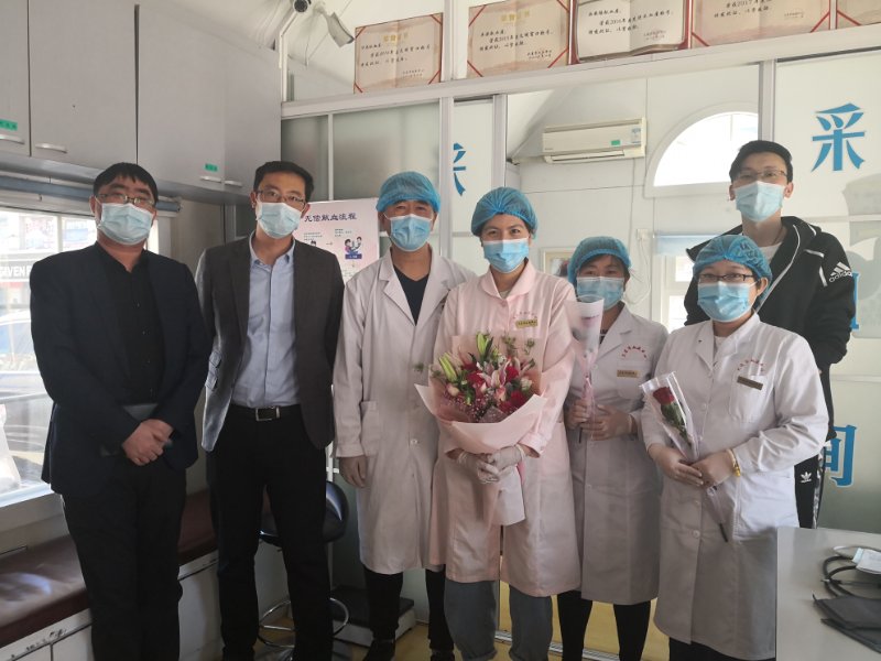 献上鲜花,感谢全体采血工作人员付出的辛勤劳动,祝愿大家节日快乐,