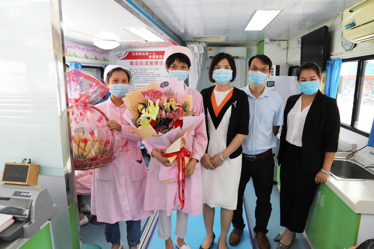 2020年5月12日是第109个“国际护士节”。5月12日下午,梧州市计生协会专职副会长李月英一行,来到旺城广场献血屋,为辛勤工作的“白衣天使”送上节日的问候和祝福,市中心血站站长谢崇利、党支部书记黄芳陪同参与慰问活动。