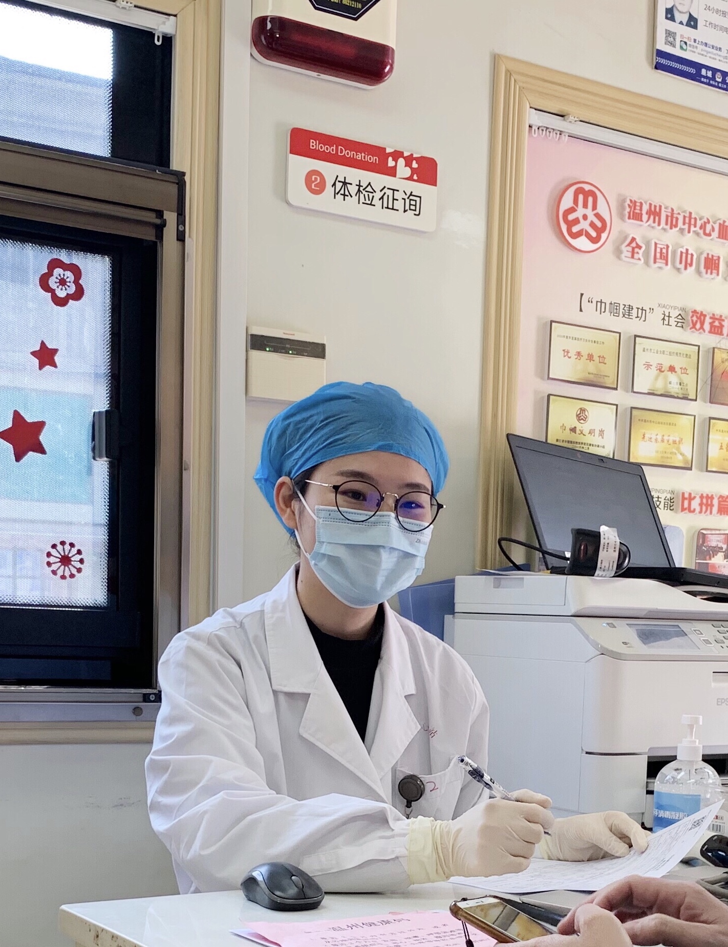 邱招凡是外采科的一名体检医生,自2016年12月进站工作以来,每个节假日,总是能看到她忙碌的身影,不缺席,不放松,严以律己的她对自己的工作是高标准、严要求。说不想放假是假的,但对于她而言,还有更重要的事情去做。“今年的劳动节真是太忙了,但这种忙是一件好事。”邱招凡说道,5月1日当天,她所在的开太献血屋迎来了100多位献血者,负责体检的她忙得像一个停不下来的陀螺,没有时间喘口气喝口水,中午吃饭为了不影响献血者也只能窝在开太的仓库里“速战速决”,洗手间也是趁着这时候才能去一趟。“很感谢献血者们能过来献血,他们实在太热情了,志愿者们也很辛苦……”提到献血者和志愿者们,邱招凡总是滔滔不绝,而提及自己,她却是很简单地一句带过:“我只是在平凡的岗位上默默耕耘而已。”也正是这样简单的一句话,蕴含了她为岗位奋斗的坚定与决心,勾勒出血液人兢兢业业、俯首奉献的形象。与此同时,还有许多像邱招凡一样的血液人,在大家休息或是结伴出游的时候,选择留在岗位上服务献血者,把关血液安全,确保采供血链的正常运转。