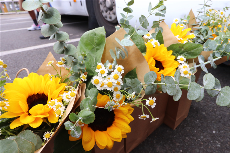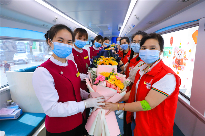 市体育中心党委志愿者们精心为献血者和医务人员准备了一束束的鲜花,本就沉浸在捐血救人的快乐中,又收到精美的鲜花,喜悦之情溢于言表……