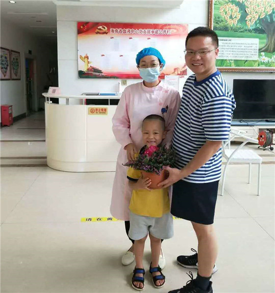 2020年的“5·12”护士节,对于海南省血液中心机采科护士胡婷来说是幸福而难忘的一天。这一天,她的丈夫作为献血者,带着孩子一起来到海南省血液中心,送给她一盆盛开的鲜花,祝她护士节快乐!她也亲自为丈夫采了血,这幅超有爱的画面,令所有人都羡慕不已。