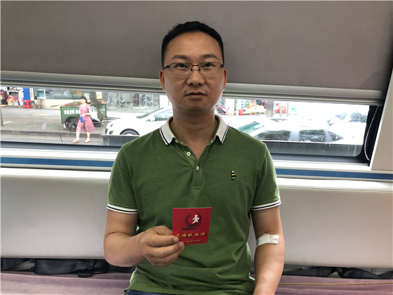 (市第四人民医院新生儿科医生龙大桥第8次参加献血)