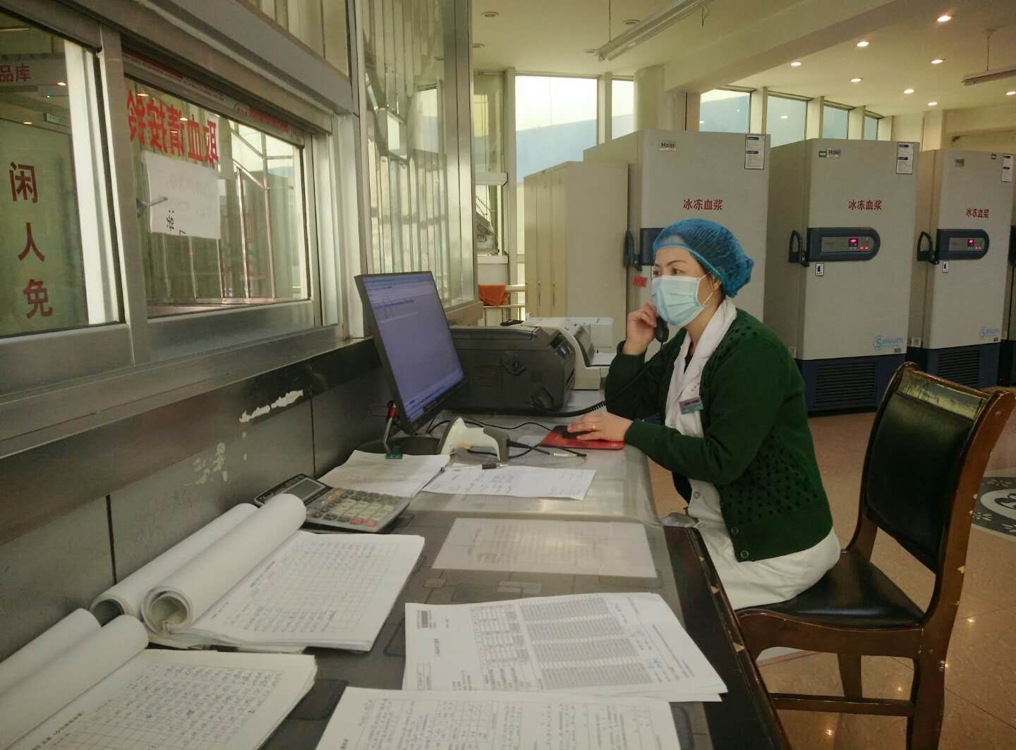 夜已深,这里却灯火通明,急促的电话铃声再次响起:“您好,这里是定西血站”“AB型RH阴性?有!“好,我马上通知司机”。时间就是生命,我们是血站人,我们是与死神赛跑的人,我们愿以一人的坚守,换来对病人生命的延续。