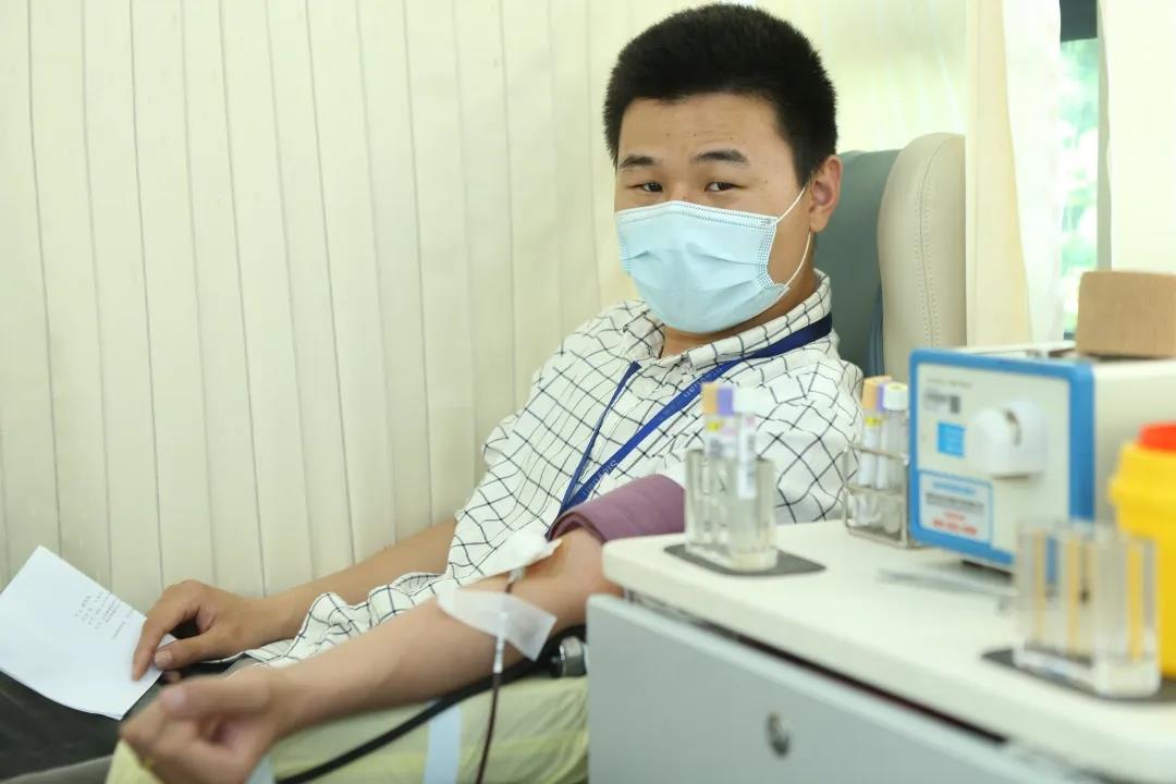 从大学时开始无偿献血的“90后”曹巨伦、冯人杰也再次献血400ml,两人已分别累计捐献1600ml、1200ml血液。