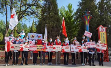 无偿献血志愿服务队携手红十字会志愿者 开展健康徒步宣传活动