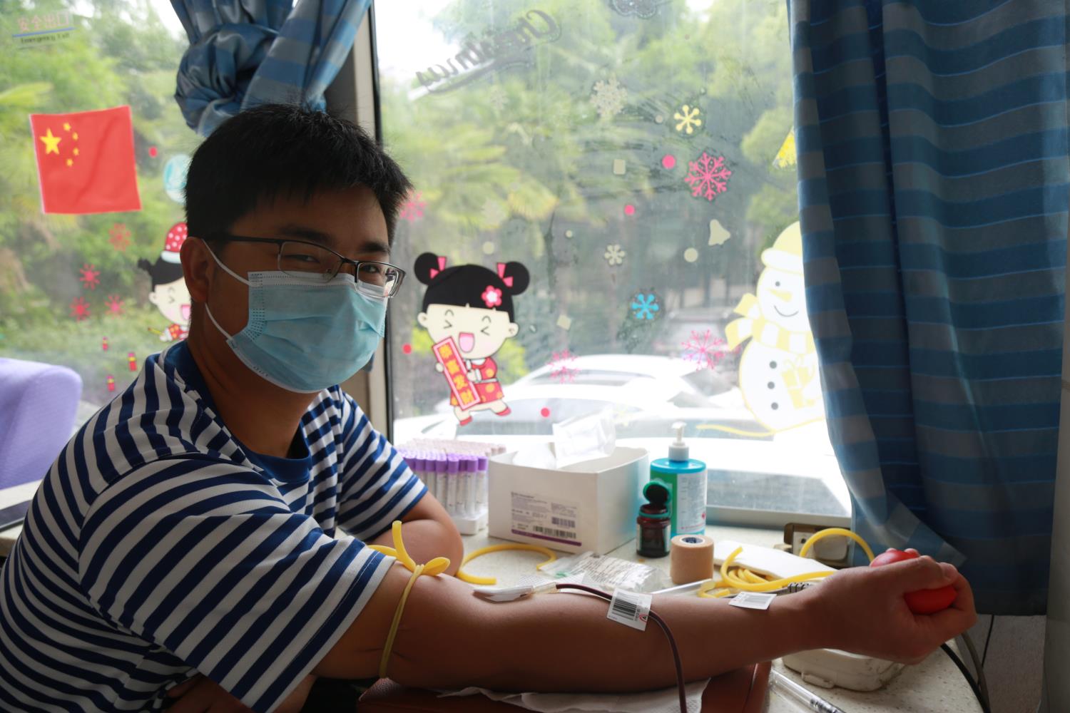 献血者队伍中,有一名大学生,他叫刘哲津,长江工程职业技术学院大二学生,听说献血车来镇上,他积极报名,当天成功献血300毫升。