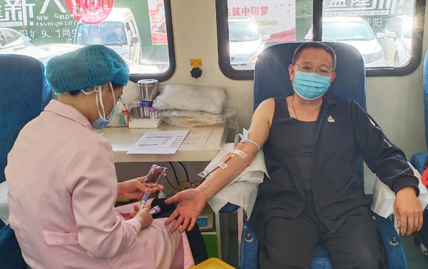 在这个甜蜜的日子里,烟台莱阳无偿献血志愿者团队的志愿者们兵分两路,一路自驾至烟台市中心血站捐献成分血,另一路相约来到莱阳采血房车捐献全血。在这些志愿者中有位年长者—王运利,1966年出生的他多年来积极投身社会公益事业,先后被评为“梨乡好人”、“山东好人”、“中国好人”,“第五届烟台市道德模范”,“市劳动模范”,在结识莱阳无偿献血志愿者队队长李升亭后,义无反顾的加入无偿献血志愿者队伍,多次捐献全血及成分血,积极参加无偿献血的宣传及服务活动,用自己的实际行动表达了对社会、对生命的无私的大爱之情。