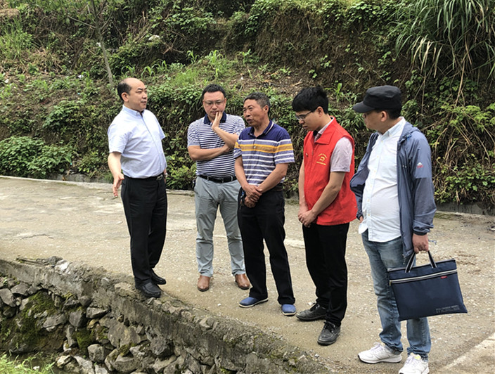 当天上午,在指挥部及村有关负责同志的引导下,朱思刚一行深入中心对口帮扶点关兴村进行走访,来到村庹家店组通组路旁,实地察看周围农户因养猪产生的污水无法排放导致当地村民身体健康隐患等情况。了解到实际困难后,朱思刚指出要针对问题,精准施策,发现问题、解决问题,并表示将从省血液中心紧张的公用经费中划拨经费一万元,用于就近修建化粪池,彻底解决因无下水道导致污水横流、蚊子苍蝇等害虫滋生的问题。随后,走进养鸡场,详细了解该养殖项目建设、饲养及收入等产业项目发展的具体情况。