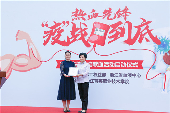 5月21日上午10点,“热血先锋 ‘疫’战到底”高校献血活动启动仪式在浙江育英职业技术学院隆重举行。浙江省血液中心党委委员、副主任徐健,浙江育英职业技术学院党委副书记、副院长谢鑫等出席本次活动。