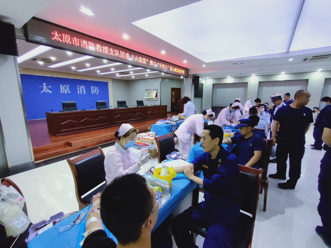 火焰蓝携手天使白,爱心献血战疫情——太原市消防救援支队开展无偿献血活动