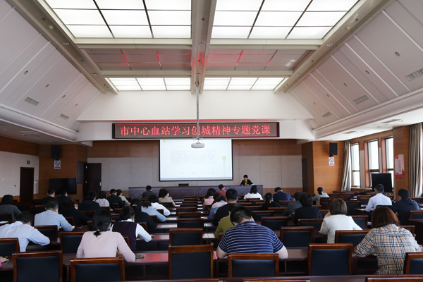 根据市直机关工委、市卫健委机关党委的统一安排部署, 5月25日,烟台市中心血站组织开展学习创城精神专题党课,党课由副站长李洪萍主讲。全站在职党员、入党积极分子40余人参加学习。