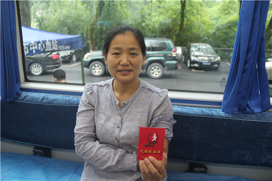(市委组织部党员干部刘淑芬第五次参加献血)