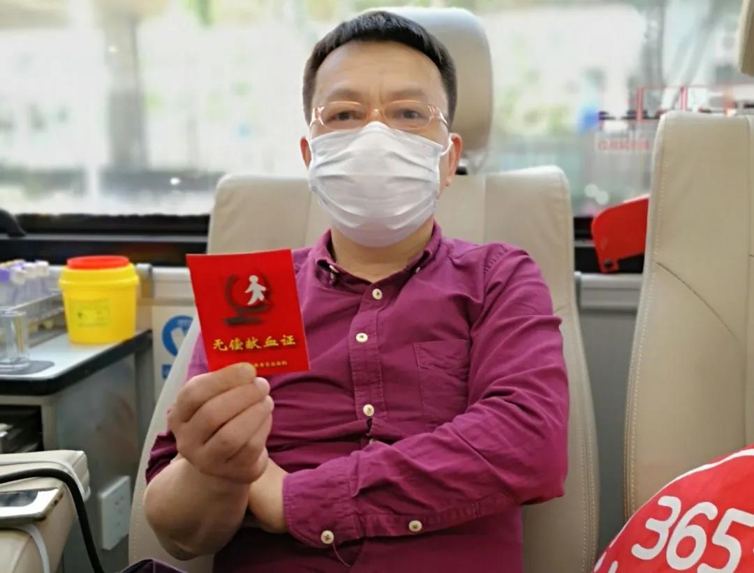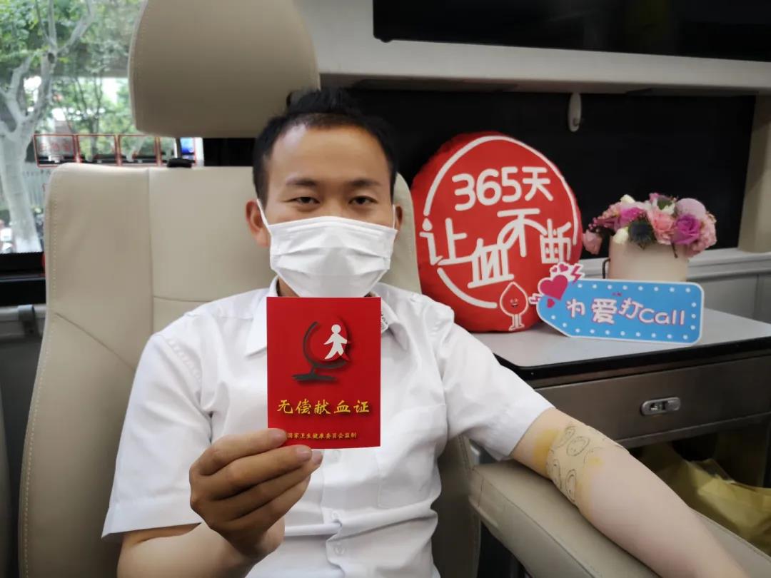 王熠桢已有多次无偿献血经历,看到爱心献血车后毫不犹豫地捐献血液400ml。
