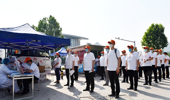 平安普惠泰安分公司员工整齐列队等候献血(马克 摄影)