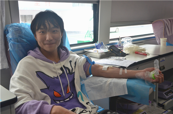 (18岁的段鑫参加第一次献血,完成了一次光荣的尝试)