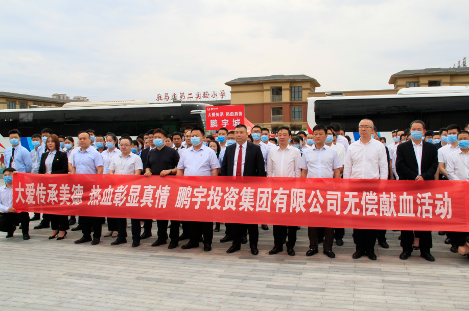 大爱传承美德,热血彰显真情 。5月13日下午,两辆献血车停靠在驻马店市鹏宇城项目部广场前,100多名员工在鹏宇集团董事长朱新红的带领下参加无偿献血公益活动。