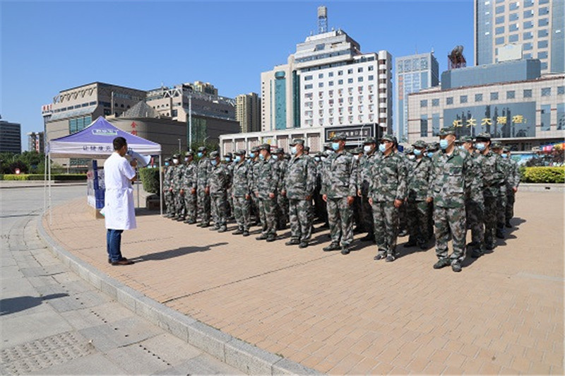 早晨8点40分,180名基干民兵到达解放广场。在列队整齐后,高新区武装部部长和武装部干事首先分别强调了本次活动的纪律与分流献血问题,随后血液中心工作人员为大家介绍了参加献血的相关注意事项,9点整,献血活动正式开始。
