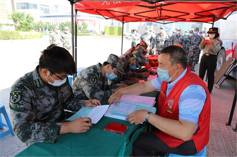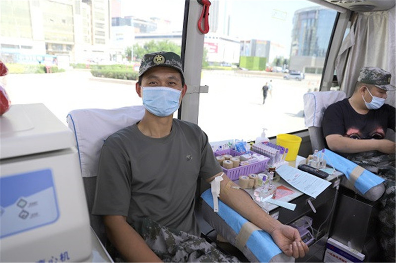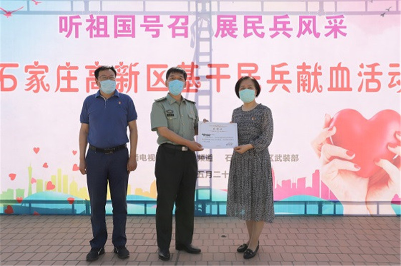 5月28日,由河北广播电视台经济生活频道、石家庄高新区武装部联合组织的“听组织号召 展民兵风采”民兵献血活动在省会解放广场举行。
