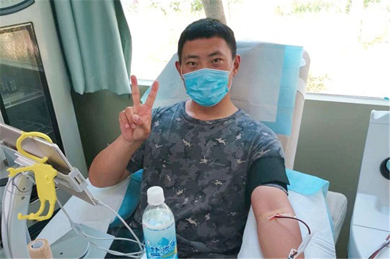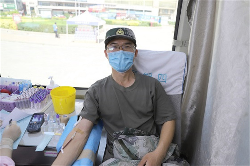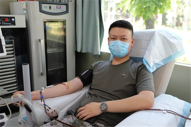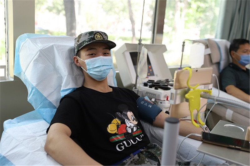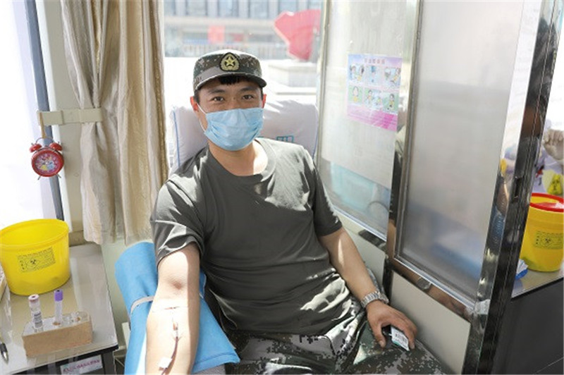 在何松身边献血的是23岁的小伙儿申锡岍,他也是第一次体验成分献血,与何松不同的是,申锡岍是有献血经验的。“2018年12月份,我在西藏当兵的时候,部队组织了一次献血活动,当时献的是全血,献完血感觉挺开心的。”时隔一年多,当得知高新区武装部组织献血活动时,申锡岍第一时间就报名参加了,“因为自己以前献过血,所以这次并不紧张。献血是件很有意义的事,不但可以促进血液的新陈代谢,提高身体素质,还可以帮助他人。假如自己和家人有朝一日需要用血还可以报销血费,是一举多得的好事。我爸爸妈妈都献过血,以后我也会坚持献血的,下次有机会带我女朋友一起来献。”说完,年轻的面庞上闪过一丝羞涩,真是个可爱又有爱心的小伙子。