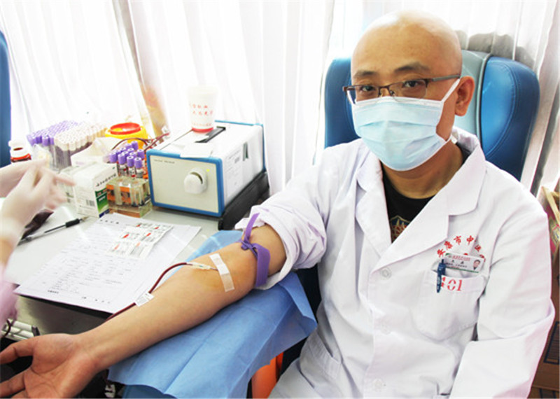 唐林波是中心医院有名的献血达人,2003年就开始献血的他,目前已累计献血一万多毫升,获得了全国无偿献血奉献奖金奖,献血之于他而言,已经成为了一种习惯。在工作中他是无偿献血的“专业解说员”,时常动员病患家属一起参与献血,在生活里他是无偿献血的“活跃宣传员”,总是与家人朋友谈起献血的好处。“我作为一名医生,有责任带头献血,只有我身体力行的去做这些事,才能鼓励更多人加入献血队伍,奉献更多爱心,捐献更多血液,帮助更多病患”唐林波笑着说到。