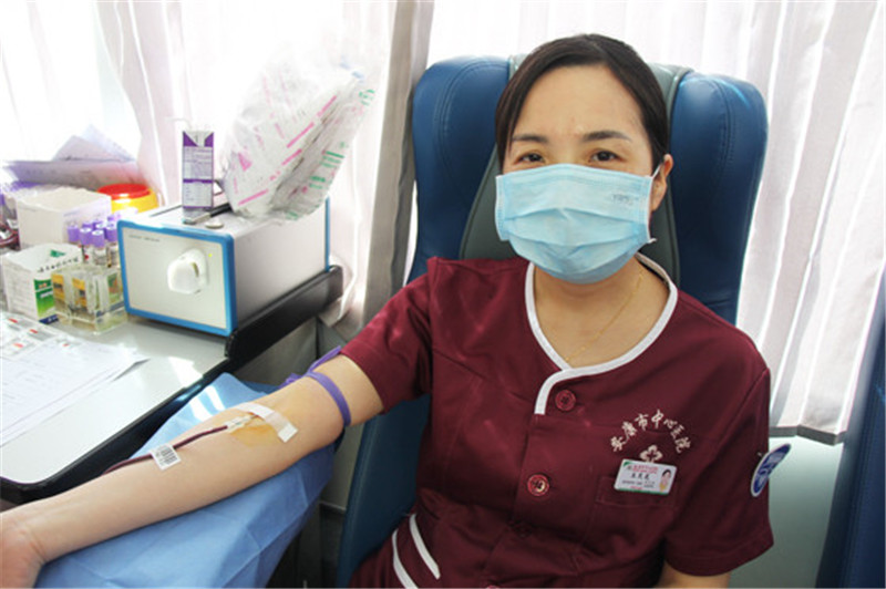 急诊医学科(内科)护士长王灵芝和同事结伴而来,以前单位组织的献血活动她从不缺席。在被问到接诊过哪些记忆深刻的危重病例时,她低头思考了一会儿说:“今年三月来了一位食管胃底静脉曲张患者,当时出血量很大,我们一次输了800毫升血才把人救了回来,真的是多亏了输血及时,所以对于很多人来说,只要身体素质没问题,献血真的没那么可怕,血液有再生的功能,献血这样有益的事,大家应该正常理性地去看待它,我们作为医生,救人和奉献爱心也当两不误。”