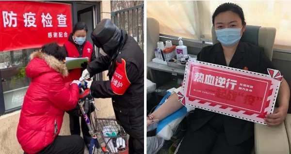 日前,东丽区人民法院政治处副主任、机关党委副书记齐颖同志组织法院干警前来献血。齐颖同志作为东丽区第一批下沉社区的区派干部,大年初六便加入到社区疫情防控的最前线,成为一名“红色网格员”,负责社区疫情摸排工作。在社区网格员中,她是年龄最大的,但她坚信“70后”绝不能输给“90后”!