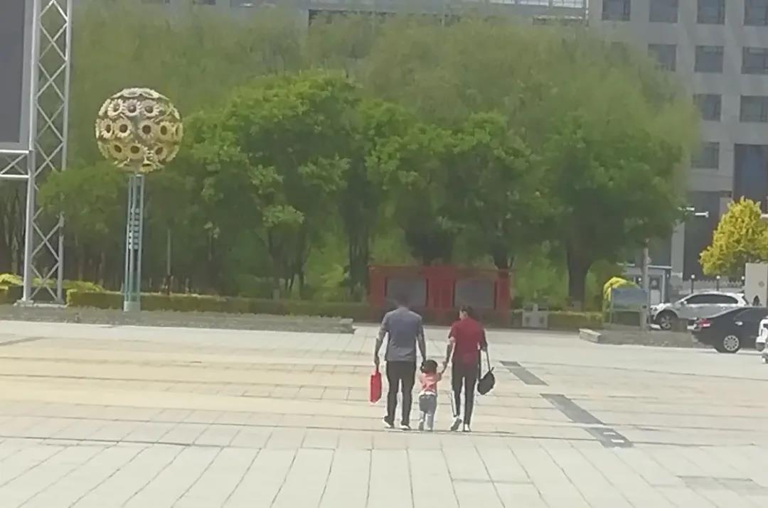夫妻献血完毕,带着小孩走在风中,背影渐行渐远,高大的榜样力量却永远树立在孩子心中。