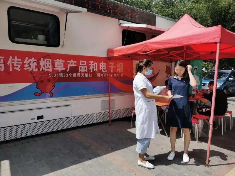 2020年5月31日是第33个“世界无烟日”,为进一步提高广大市民及青少年对烟草的正确认识,维护市民及青少年身体健康,渭南市中心血站围绕“保护青少年远离传统烟草产品和电子烟”这个主题,在市中心广场和贸易广场的献血房车前组织开展了宣传活动。