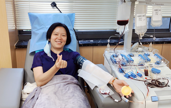 虽然是第一次捐献成分血,但是俞老师有多次捐献全血的经验,对献血的注意事项也了如指掌,所以健康检查和献血前检测都很顺利。经过一个多小时的血小板采集,俞老师成功捐献了1个治疗量。她说:“我不能像一线医护人员那样冲在抗疫的最前线,就在后方尽自己的一点微薄之力吧。”