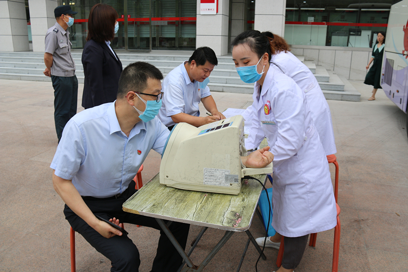 6月10日上午,长安银行宝鸡分行组织干部职工开展团体献血活动,迎接6.14世界献血者日的到来。
