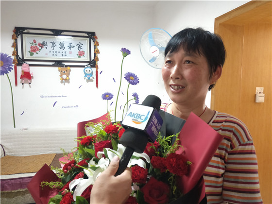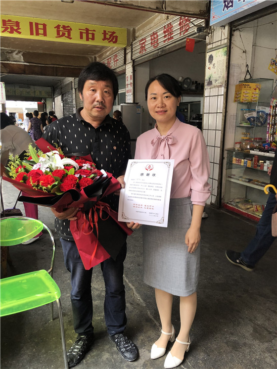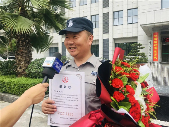 曾宪军接过鲜花、感谢状和慰问品的那一刻显得十分惊喜,脸上露出了灿烂的笑容。