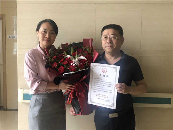 市卫健委副主任杨彬向郭斌颁发感谢状,充分肯定了他的无偿献血先进事迹。