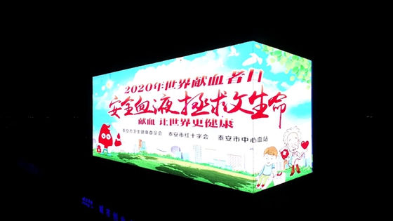为向献血战疫的热血英雄们致敬,6月11日-6月14日,泰安旅游经济开发区爱琴海购物公园、银座商城中心店、盘古天地WFC等泰安市地标性建筑及商业区楼体LED大屏将同步滚动播出“隆重庆祝6•14世界献血者日”、“向为爱逆行的热血英雄致敬”、“安全血液拯救生命”、“献血,让世界更健康”等鼓舞人心的宣传口号和感谢语,并播放山东省庆祝世界献血者日公益宣传短片和宣传海报。